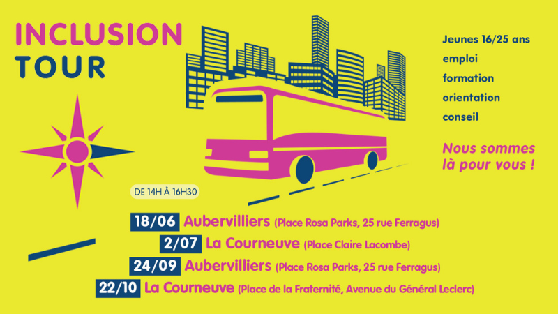 L'Inclusion Tour est de retour en juin pour une tournée qui s'étendra sur trois ans, grâce à l'AMI O2R financé par l'État. Vous êtes à la recherche d'une alternance, d'un emploi ou d'une formation ? Vous souhaitez créer une entreprise ? Besoin de conseils pour mettre en place votre projet...